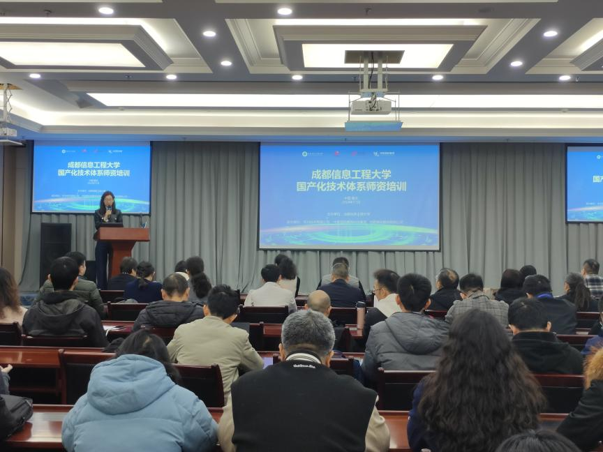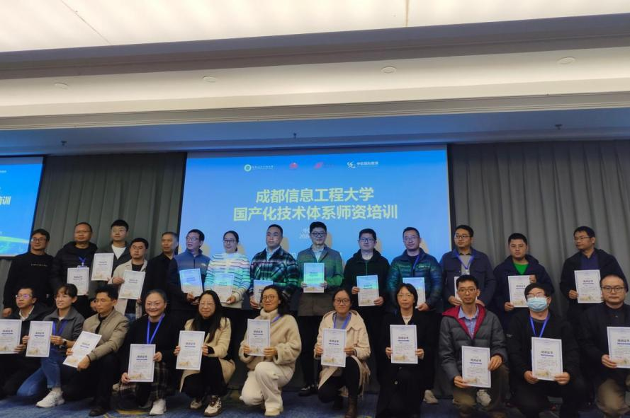 经过为期一周的集中式师资培训,由williamhill中国官方网站主办、华为技术有限公司和中软国际教育科技集团协办的国产化技术体系师资培训班于11月22日顺利结业,并举行了结业仪式,来自williamhill中国官方网站及西华大学、成都理工大学、成都大学、西南石油大学和西南科技大学的共56位教师参加了此次培训。