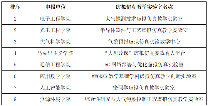 根据教育部教育技术与资源发展中心(中央电化教育馆)《关于高等学校虚拟仿真教学创新实验室项目第二批项目学校申报工作的通知》(教技资〔2025〕10号),和《关于开展“高等学校虚拟仿真教学创新实验室”项目第二批项目申报工作的通知》要求,8个教学单位申报推荐8个项目,教务处于2025年4月15日组织专家现场开展项目评审。评审结果排序如下表,并拟推荐排序前三名项目申报“高等学校虚拟仿真教学创新实验室”项目第二批项目。