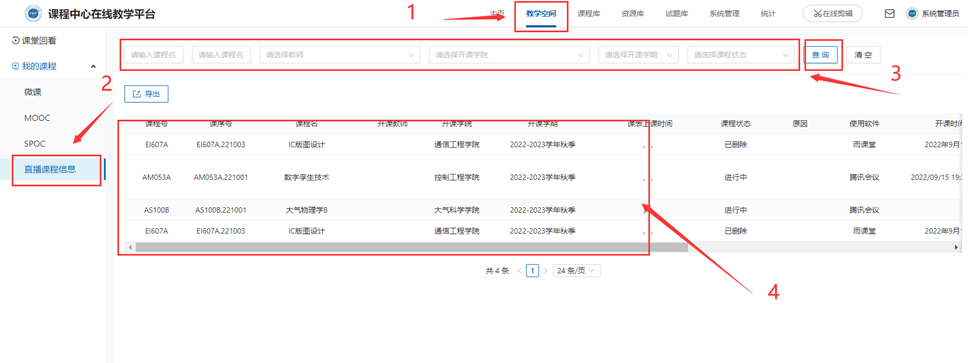 三、教师、管理员查看开课情况