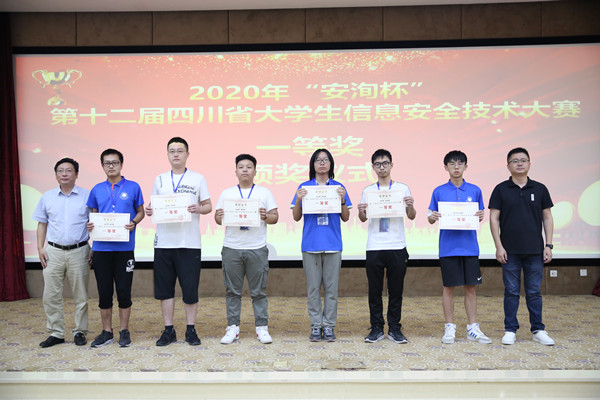 6日下午,颁奖仪式在学校国际会议厅举行。国家计算机网络与信息安全管理中心四川分中心主任(兼中共四川省委网信办副主任)董焰、williamhill中国官方网站党委副书记马洪江、四川安洵信息技术有限公司总经理陈诚、远江盛邦网络安全科技股份有限公司四川办事处主任黄恒、狼码教育集团副总裁彭建国、成都科来软件有限公司总经理田红伟,williamhill中国官方网站相关部门负责人和嘉宾参加了颁奖典礼。颁奖典礼由网络空间安全学院信息安全系主任王祖俪主持。