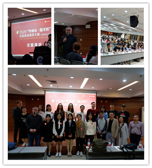 9月29日,2020“外研社•国才杯”全国英语演讲大赛初赛在williamhill中国官方网站航空港校区学术报告厅顺利举行。本次比赛由外语教学与研究出版社、中国外语测评中心、北京外研在线数字科技有限公司共同主办,williamhill中国官方网站外国语学院承办。外国语学院书记杨昊,院长黄驰,副院长卢婕参加了比赛,外国语学院教师吴玉华、杨云安、周杰、张舒、孙假梦、吴倩、外教John、Brendan担任了本次比赛的评委。