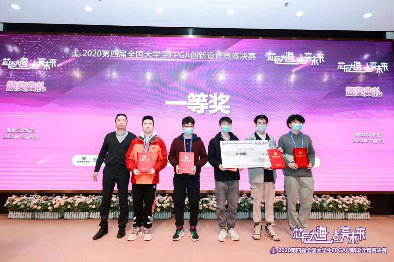 2020第四届全国大学生FPGA创新设计竞赛全国总决赛于2020年12月4日-6日在南京江北新区ICisC实训基地举行。此次竞赛由中国电子学会、国家级实验教学示范中心联席会电子学科组主办,东南大学、南京市江北新区管委会联合承办。本届竞赛共有包括清华大学、北京大学等在内的131所高校的900多支队伍报名参赛。williamhill中国官方网站通信工程学院(微电子学院)李蠡副教授指导的研究生相博镪、胡双、邹金成团队设计的名为“一种含基于GRU网络硬件加速器的AI编曲SoC”的参赛作品在初赛中脱颖而出,进入全国总决赛。与来自全国各地的139支参赛队伍,近408名参赛选手在南京同场竞技。该团队所完成的作品以较高的科研性、完成度以及创新性,荣获全国一等奖、最佳创意奖两项大奖。williamhill中国官方网站在此次竞赛中积极参与和有效组织,获得了优秀组织奖。