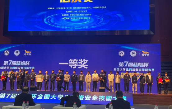 10月29日,第七届“蓝帽杯”全国大学生网络安全技能大赛决赛及颁奖仪式在中国人民公安大学圆满落幕。本届“蓝帽杯”决赛由公安部网络安全保卫局、教育部信息管理中心、中国教育技术协会指导,中国人民公安大学主办。来自全国33所公安院校与地方知名高校的92支队伍同场竞技。